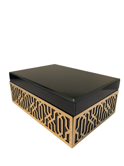 Apresentamos a caixa decorativa em madeira e vidro azul-marinho com detalhes dourados, uma peça sofisticada que combina beleza e funcionalidade. Com design cuidadosamente elaborado, ela é perfeita para decorar, armazenar e exibir suas joias e acessórios favoritos. Seu compartimento interno oferece praticidade na organização de itens de uso diário, tornando-a um complemento elegante para qualquer ambiente. Ideal para uso pessoal ou como presente, sua combinação de madeira, vidro e metal garante durabilidade e estilo. Disponível em dois tamanhos, essa caixa é a escolha certa para quem valoriza uma estética refinada.