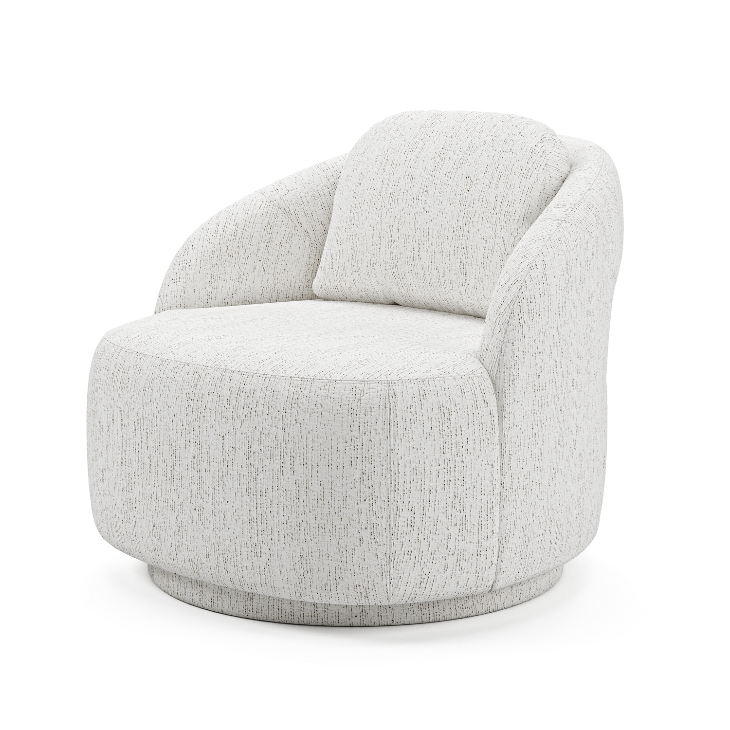 A estrutura interna em madeira de eucalipto reflorestada garante resistência e durabilidade. O estofado proporciona suporte confortável ao sentar e encostar, ideal para momentos de leitura, descanso ou recepção. A base giratória oferece rotação suave, agregando praticidade ao dia a dia e um toque contemporâneo à composição.