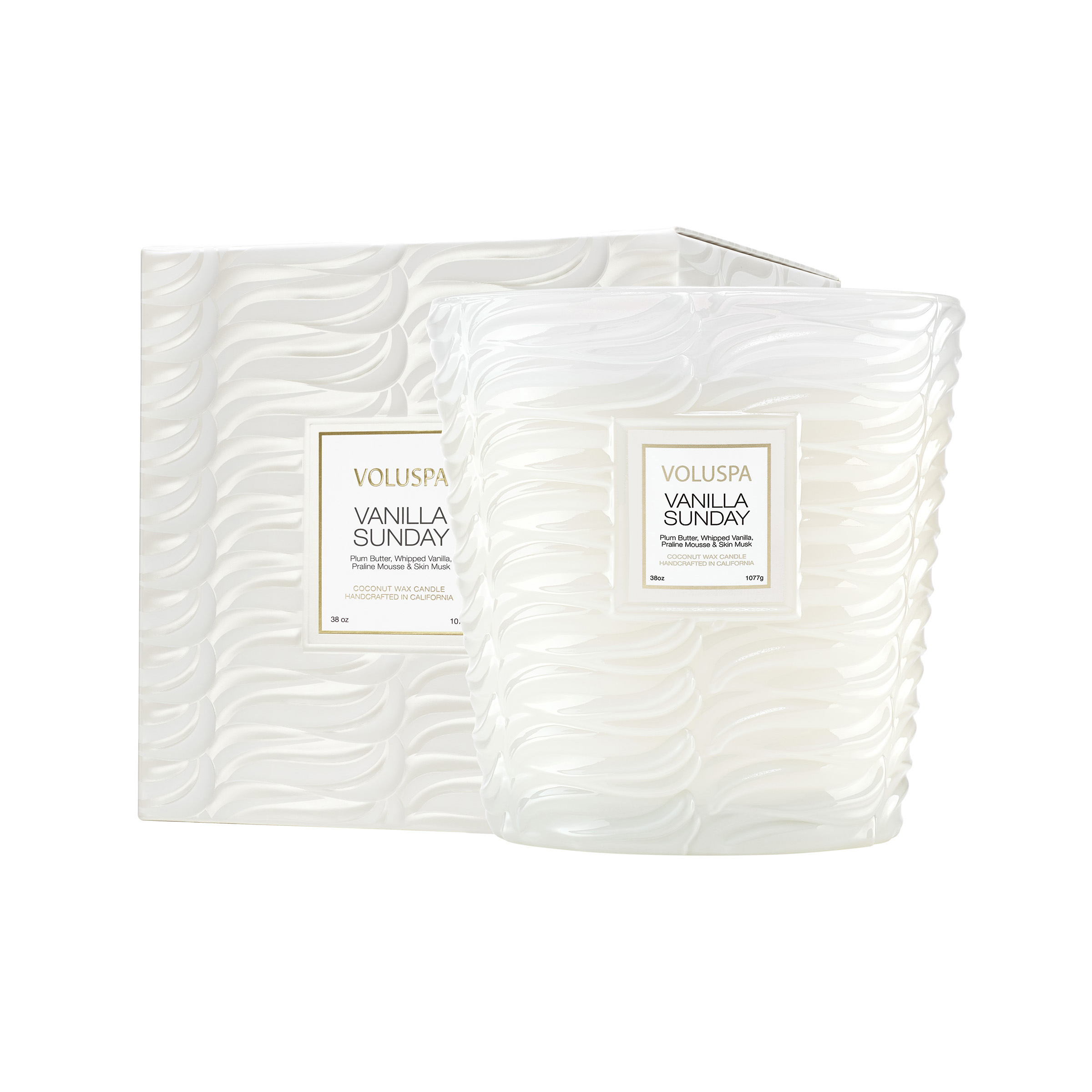 A Vela Voluspa Vanilla Sunday é um convite para desacelerar e transformar o ambiente em um refúgio de conforto e bem-estar. Sua fragrância combina a suavidade da ameixa com o frescor delicado da frésia, evoluindo para notas cremosas de baunilha batida e pralinê.