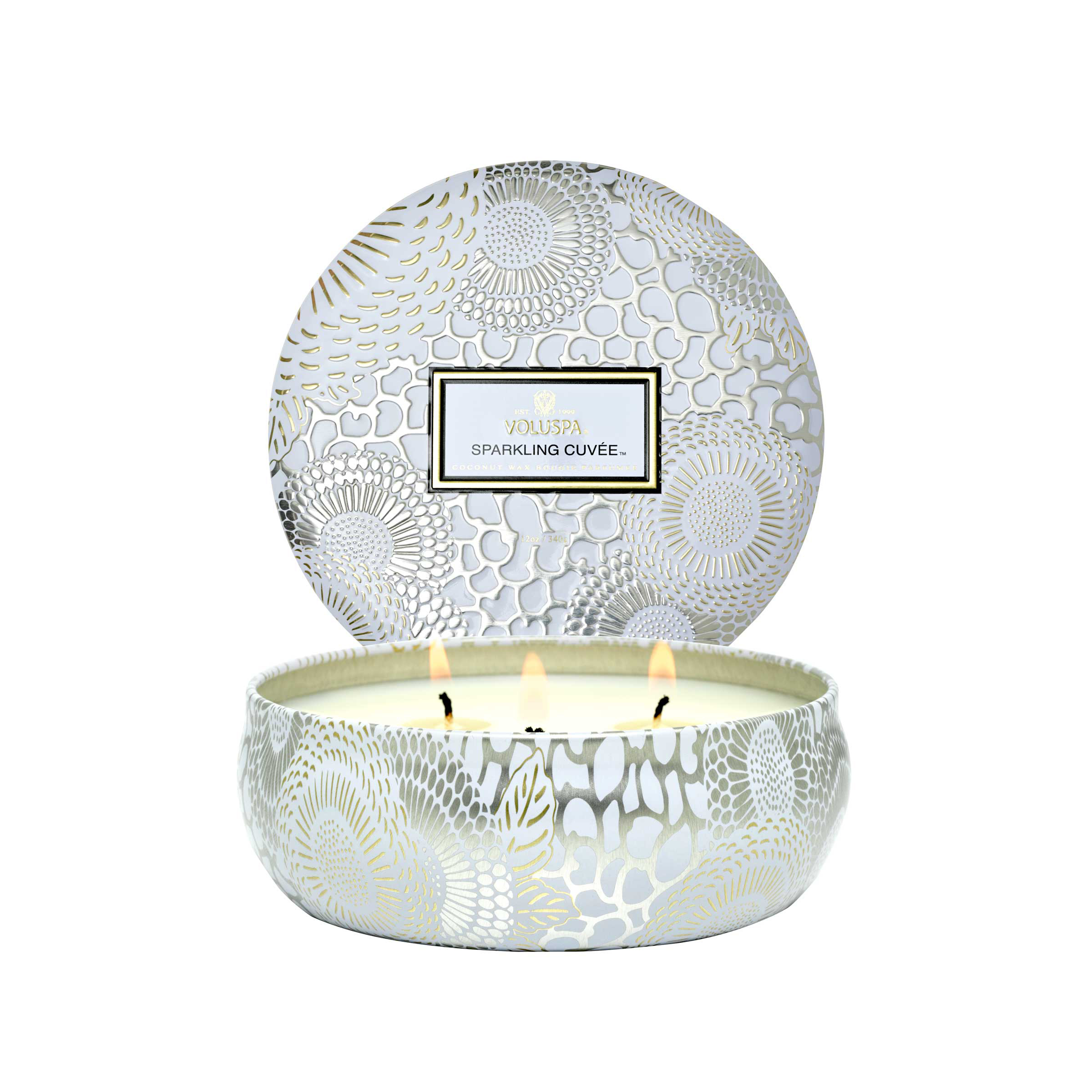 A Vela Voluspa Sparkling Cuvée traduz a leveza e a sofisticação de uma celebração em forma de fragrância. Com um perfil fresco e vibrante, combina notas de vinho espumante, pomelo, groselha vermelha, nectarina e pétalas de rosa, finalizadas com um toque suave de carvalho.